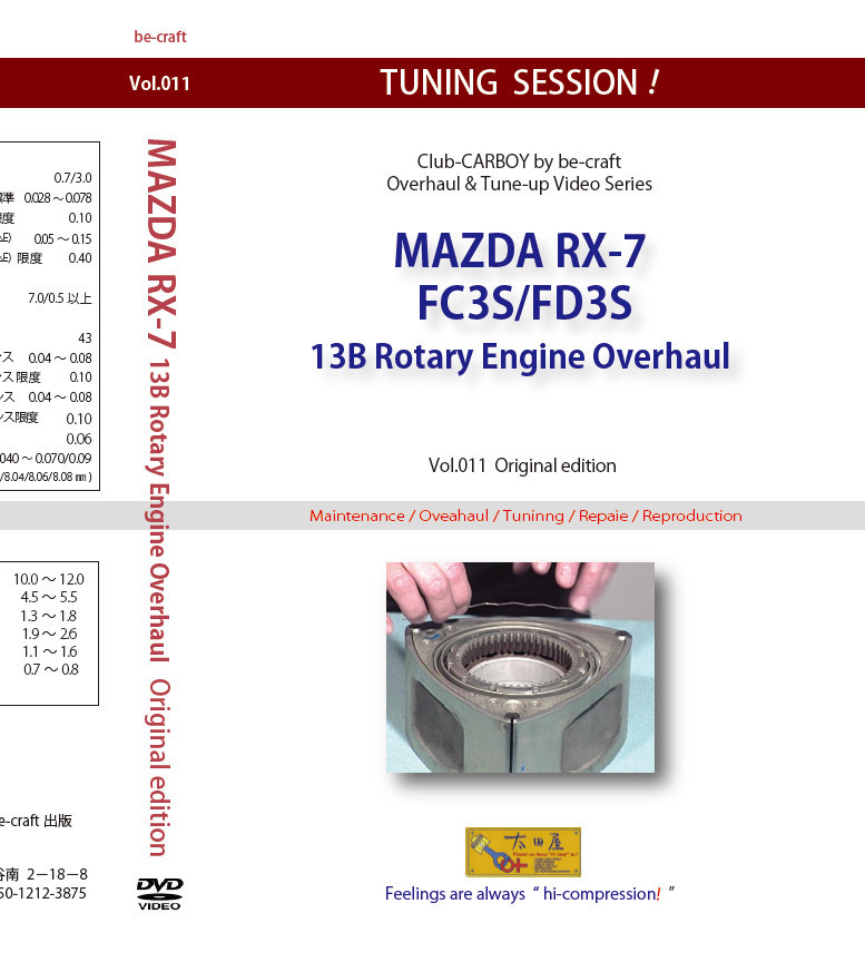 > 【旧車・絶版車】13Bロータリーエンジン組み付け徹底Vol.011/DVDと「13B&FC3S FD3S Tuning」CDの2枚をトールケースに収めたセット決定版!