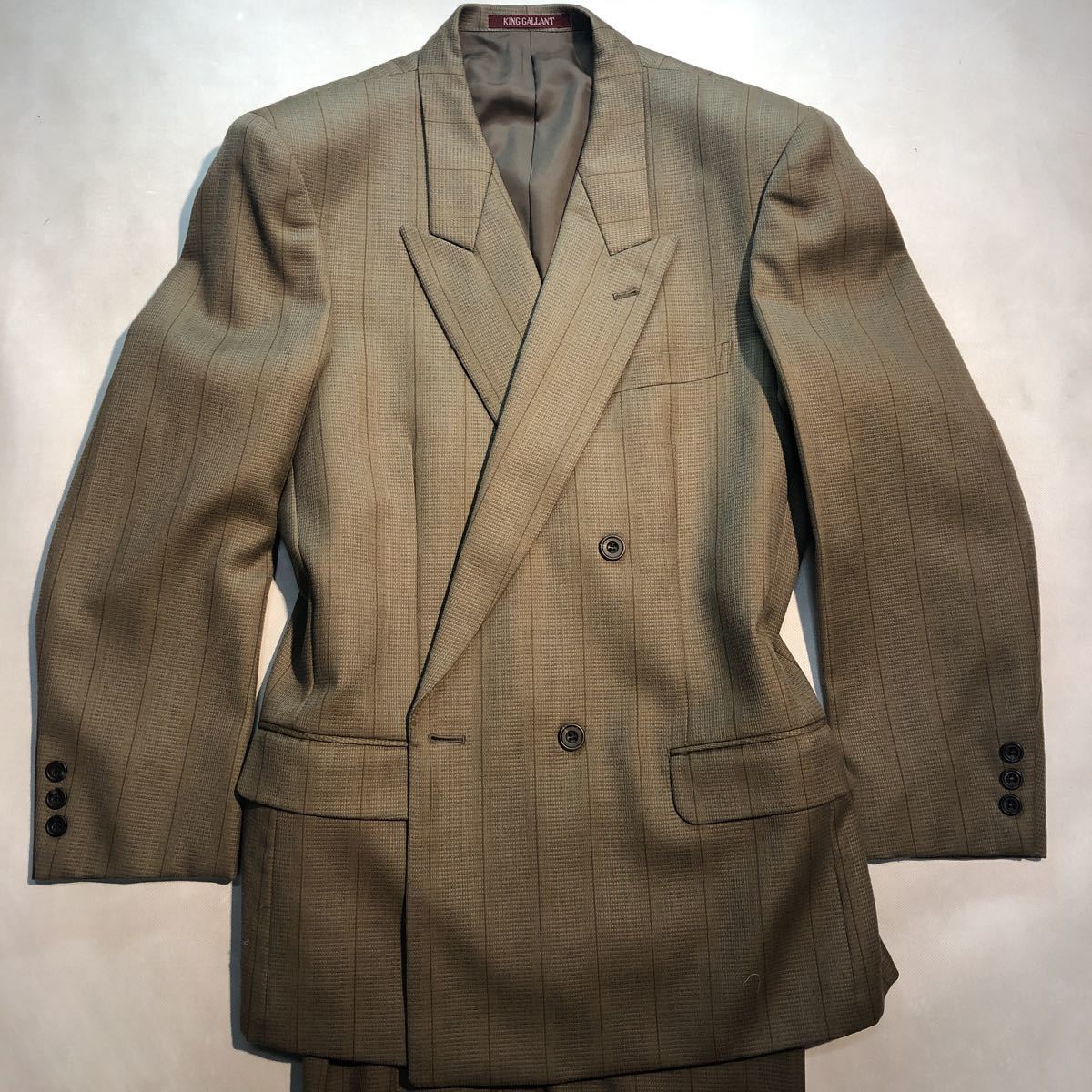 - 【日本の匠 至極の逸品★サイズAB5】新品タグ付き 高級4Bダブルスーツ カーキー系ストライプ 総裏/ノーベンツ 2タック ウール100% 極上