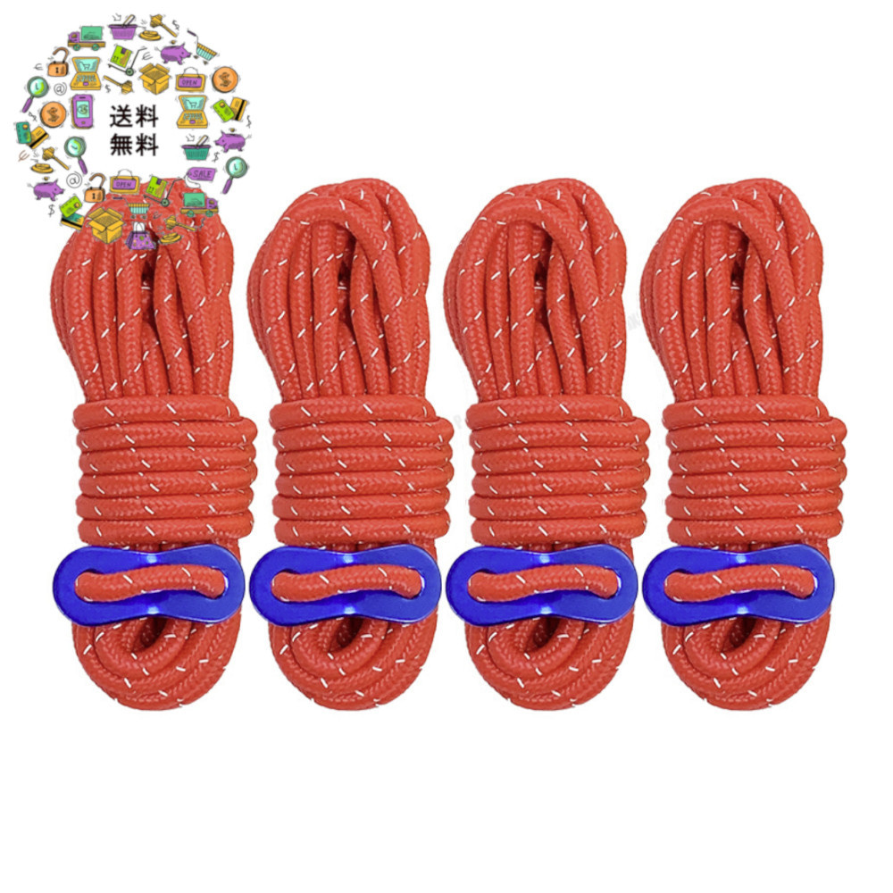 - 【レッド】テントロープ 反射材入り 4mm 4m 4本