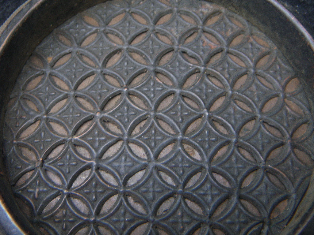 - 七宝繋ぎ 透かし細工 古金具 建具金具 85㎜ 49g 1枚 時代品 家具 襖引手 変り型 引き手 古材 日本建築 ふすま 襖金具