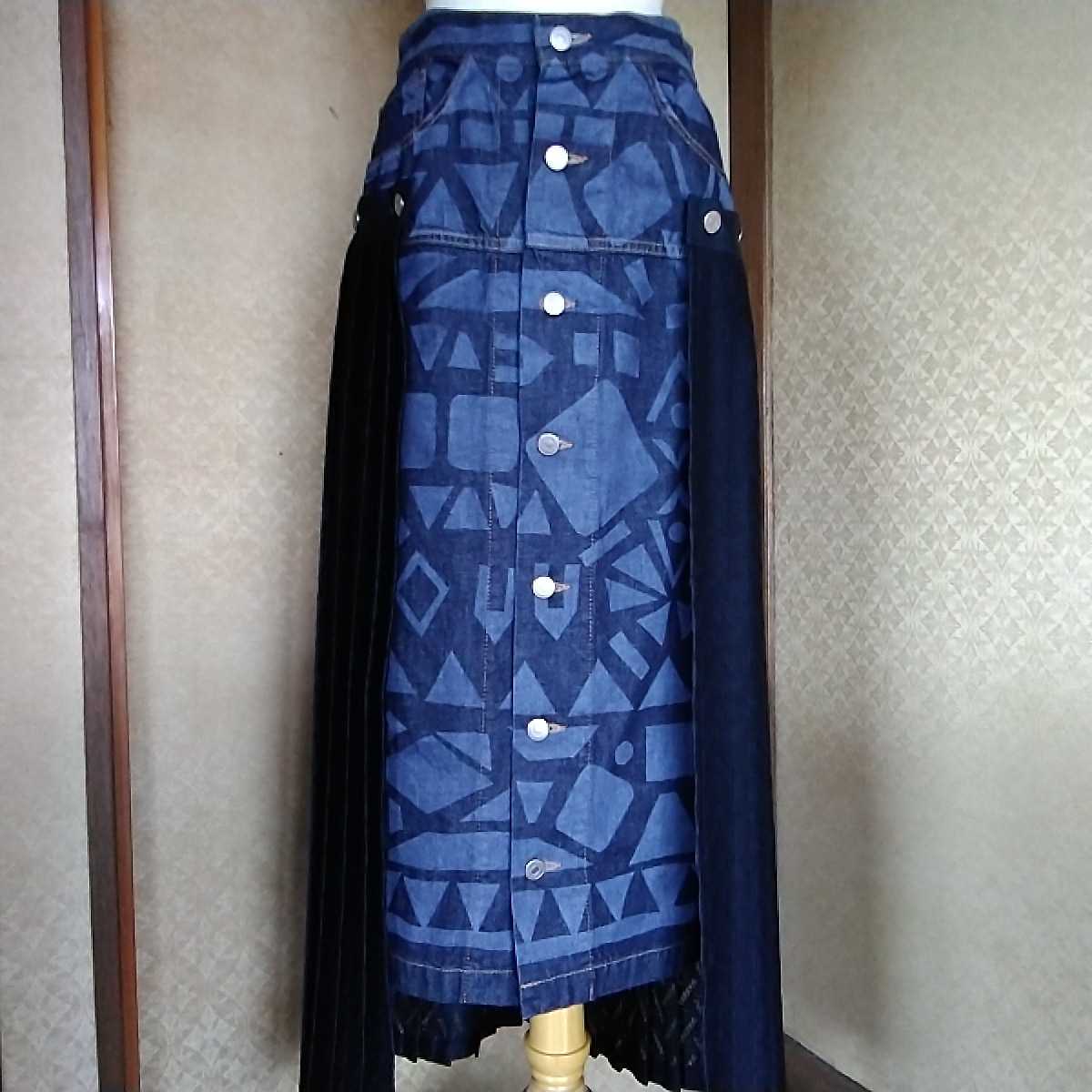 - ZUCCa 柄デニムロングタイトスカート 外側取り外し可能プリーツスカート付き