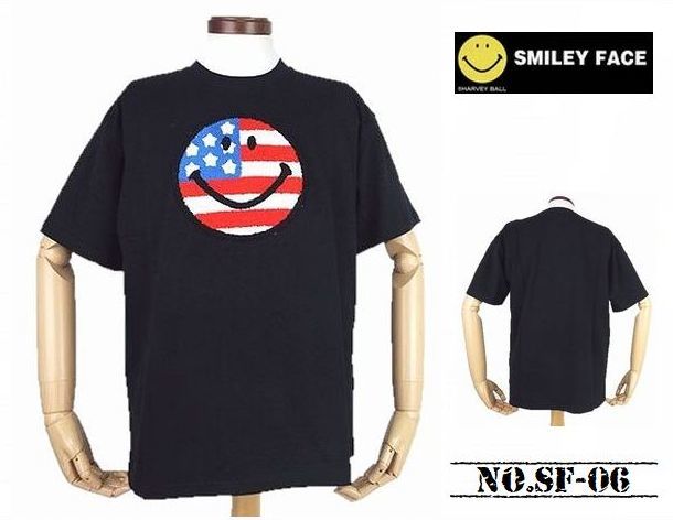 > 【送料無料! 37%FF】SMILEY FACE スマイリーフェイス ワイドシュルエット サガラ刺繍Tシャツ SF-06 BLACK_Mサイズ