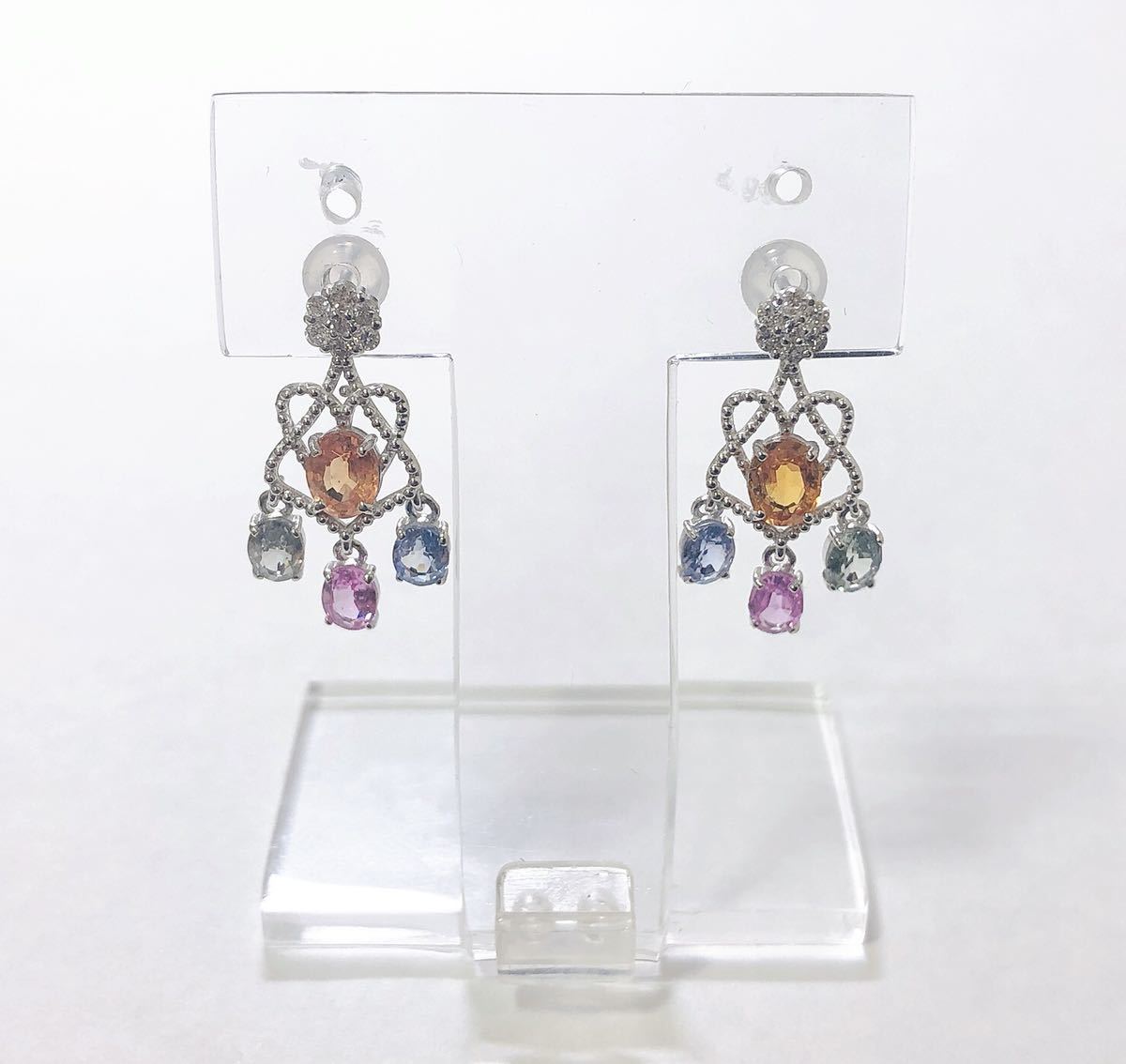 - 【質屋 尾張屋商店 東京】 ☆仕上済☆ K18WG サファイヤダイヤモンドレディースピアス カラフル