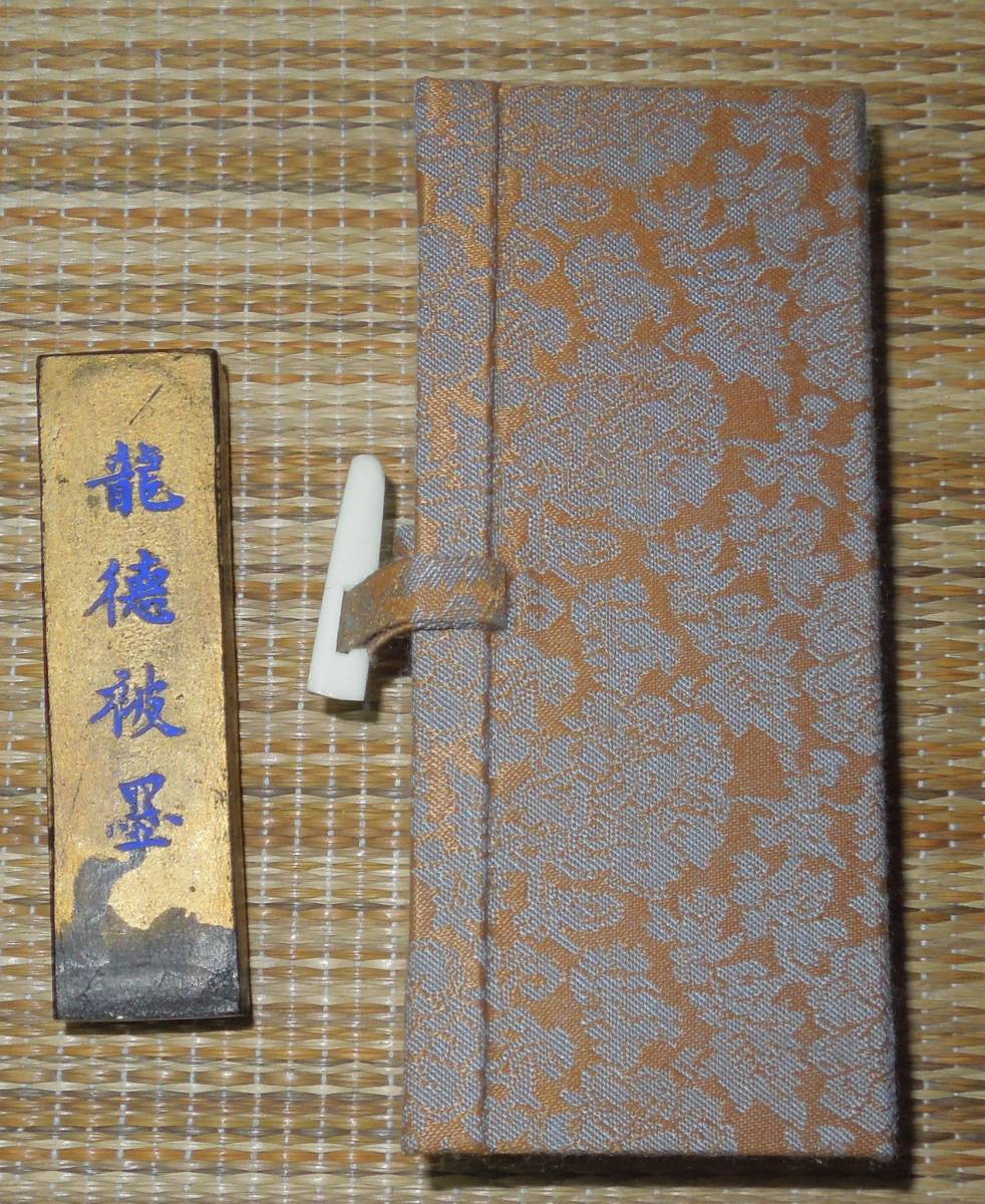 - 書道 墨・古墨 古梅園 秘蔵墨 明治墨 金巻 龍徳被墨 明治戊申(41年) 1908年 清・光緒34年 約29g