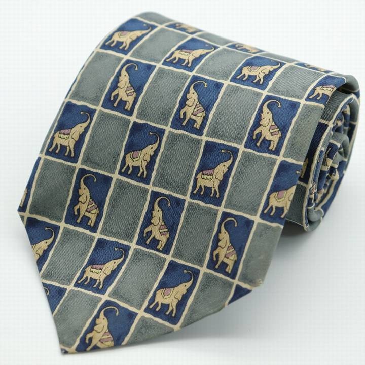 > ジムトンプソン 総柄 動物柄 象 格子柄 高級 シルク ブランド ネクタイ メンズ グレーJIM THOMPSON