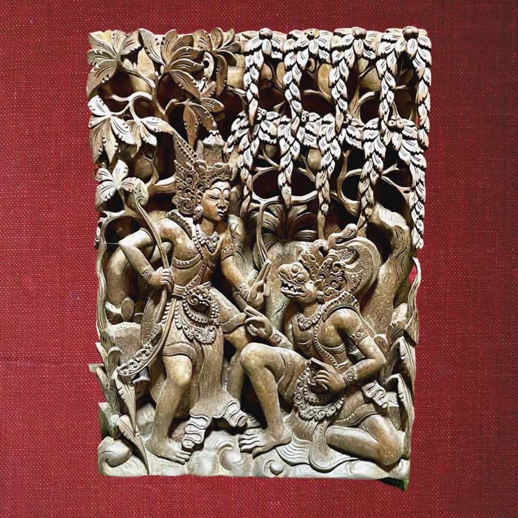 - (中古品)仏教美術 木彫 細密彫刻置物。