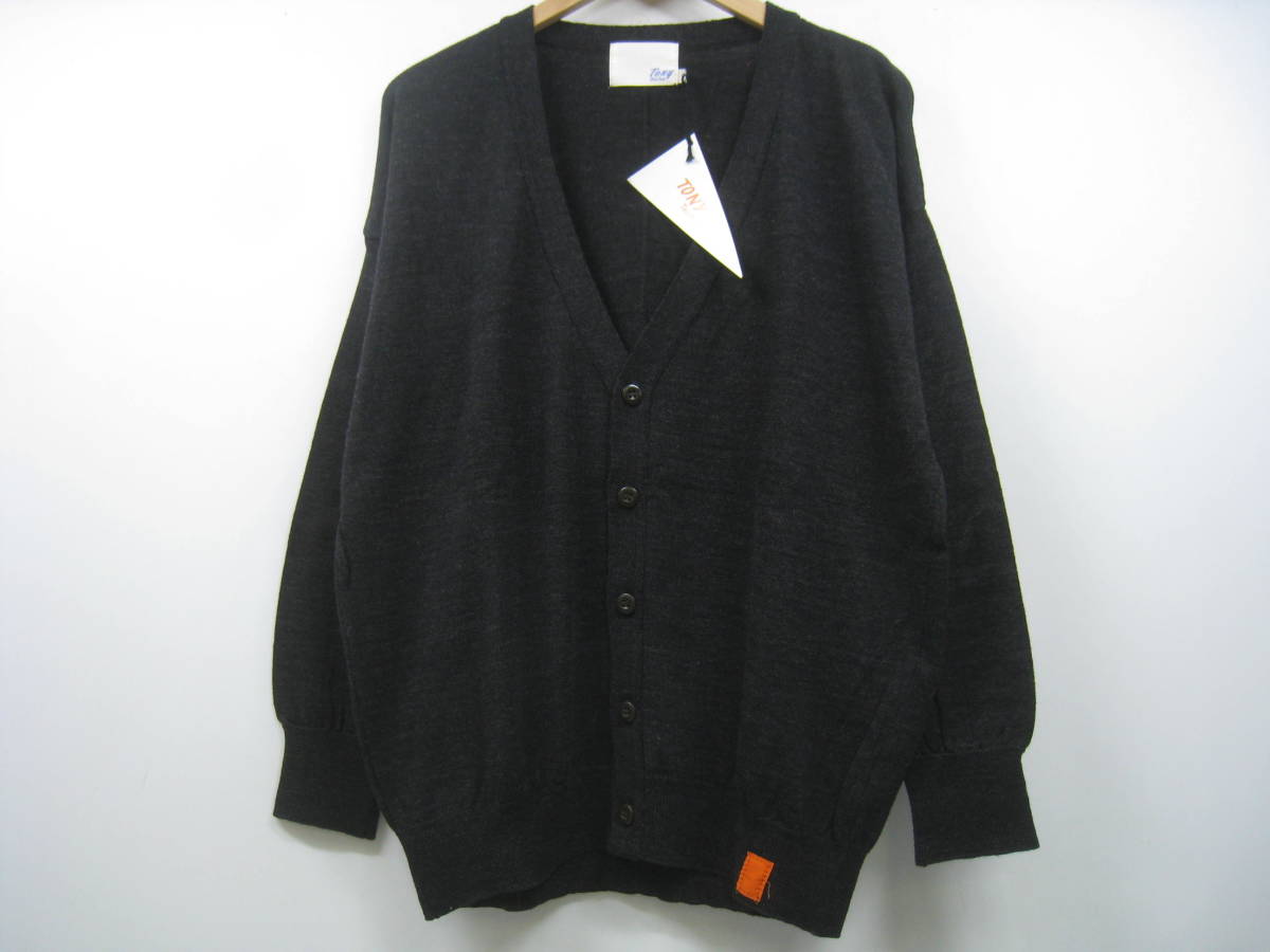 - 新品 定価20520円 Tony Taizsun トニータイズサン カーディガン ウール100% Vネック 黒 チャコールブラック サイズS