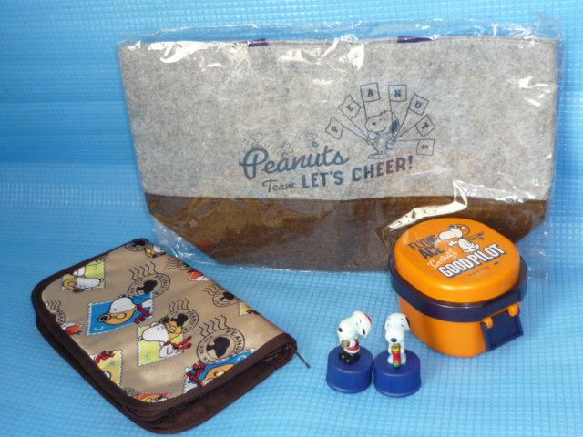 > A★未使用・非売品★スヌーピー マルチポーチと三好製作所 GEL-COOL 保冷剤一体型スヌーピー保冷容器他5点