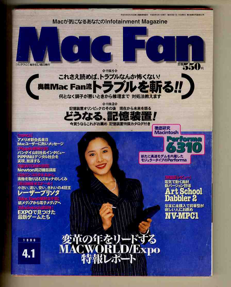 書名/記事: 96.4.1 マックファン MacFan/特集①=奥義MacFan流 トラブルを斬る!!、特集②=どうなる記憶装置!、徹底研究Macintosh - Performa6310、Newton周辺機器講座、レーザープリンタ、…