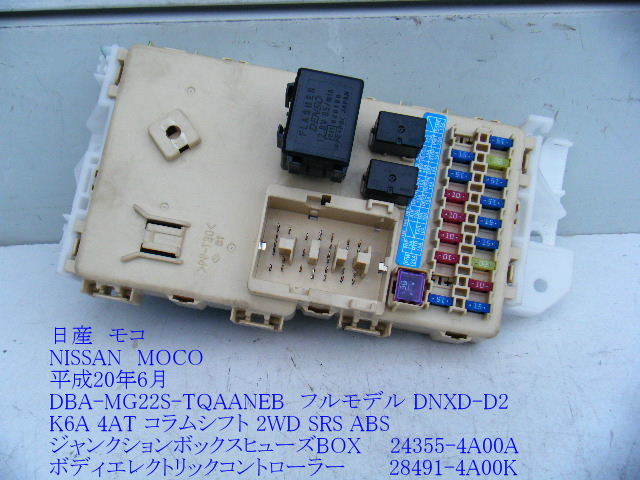 - ◆MG22SS MF22S モコ MRワゴン ヒューズボックス ジャンクションブロック 24355-4A00A ボディエレクトリック 28491-4A00K 純正 中古 [11976