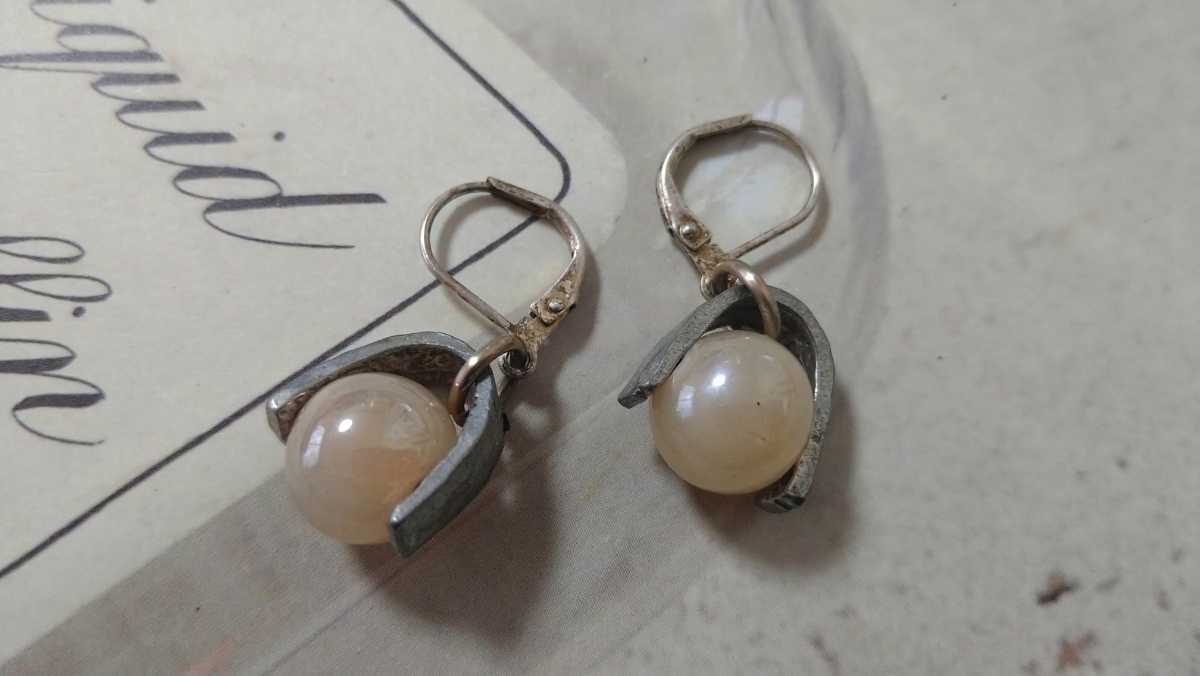 - □訳あり□ベージュ系ボール×シルバーカラー・ピアス□