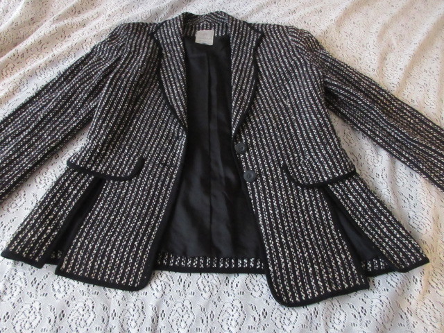> U)■日本製■【パリエンヌ PARIENNE】AN アン■黒白ツイード毛84%■ソフトテーラー襟/前2本スリットデザイン!■スタイリッシュなJK