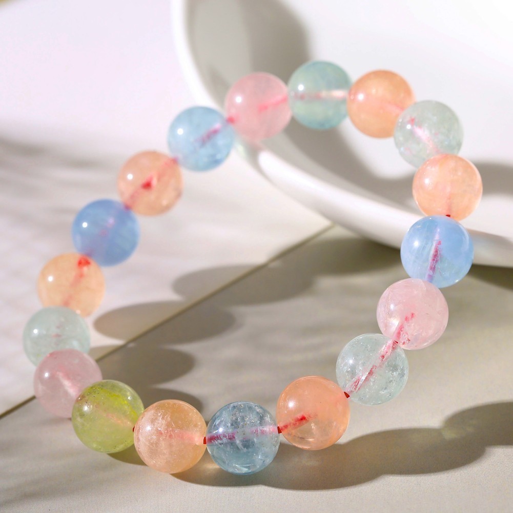 > [EasternStar] 海外発送 キャンディカラー モルガナイト Morganite 透明感抜群 特選 玉サイズ8mm 腕回り約16cm