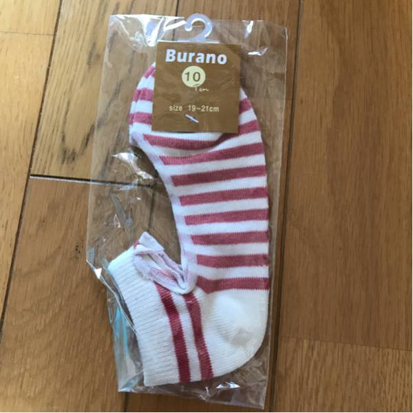 - 新品未使用 Burano ボーダー柄靴下 19~21cm ピンク×白