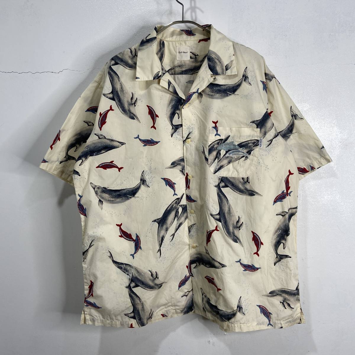 - ☆送料無料☆Karl hemut☆カールへムル☆イルカ柄半袖シャツ☆開襟シャツ☆メンズL☆B23