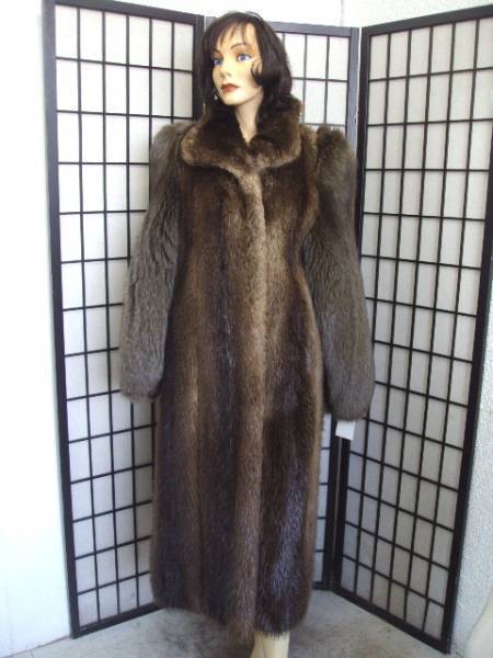 - ブラウン ビーバー&フォックス毛皮コート サイズ4-6