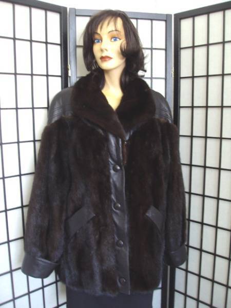 - ダークミンク&レザー毛皮ジャケット サイズ10