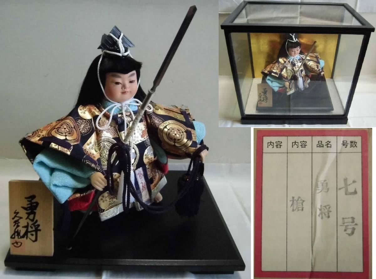 - 五月人形 勇将 槍 久左衛門作 七号 木製ガラスケース入り 前扉式 外箱入り 節句 子供の日 日本人形 置物 飾り物 工芸品 レトロ
