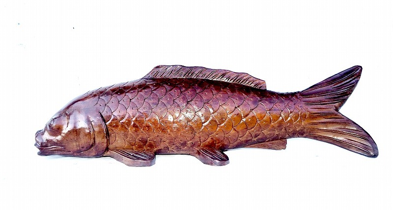 - 木彫 大きなコイ 鯉 体長90cm 中古美品 置物 インテリア 飾り物