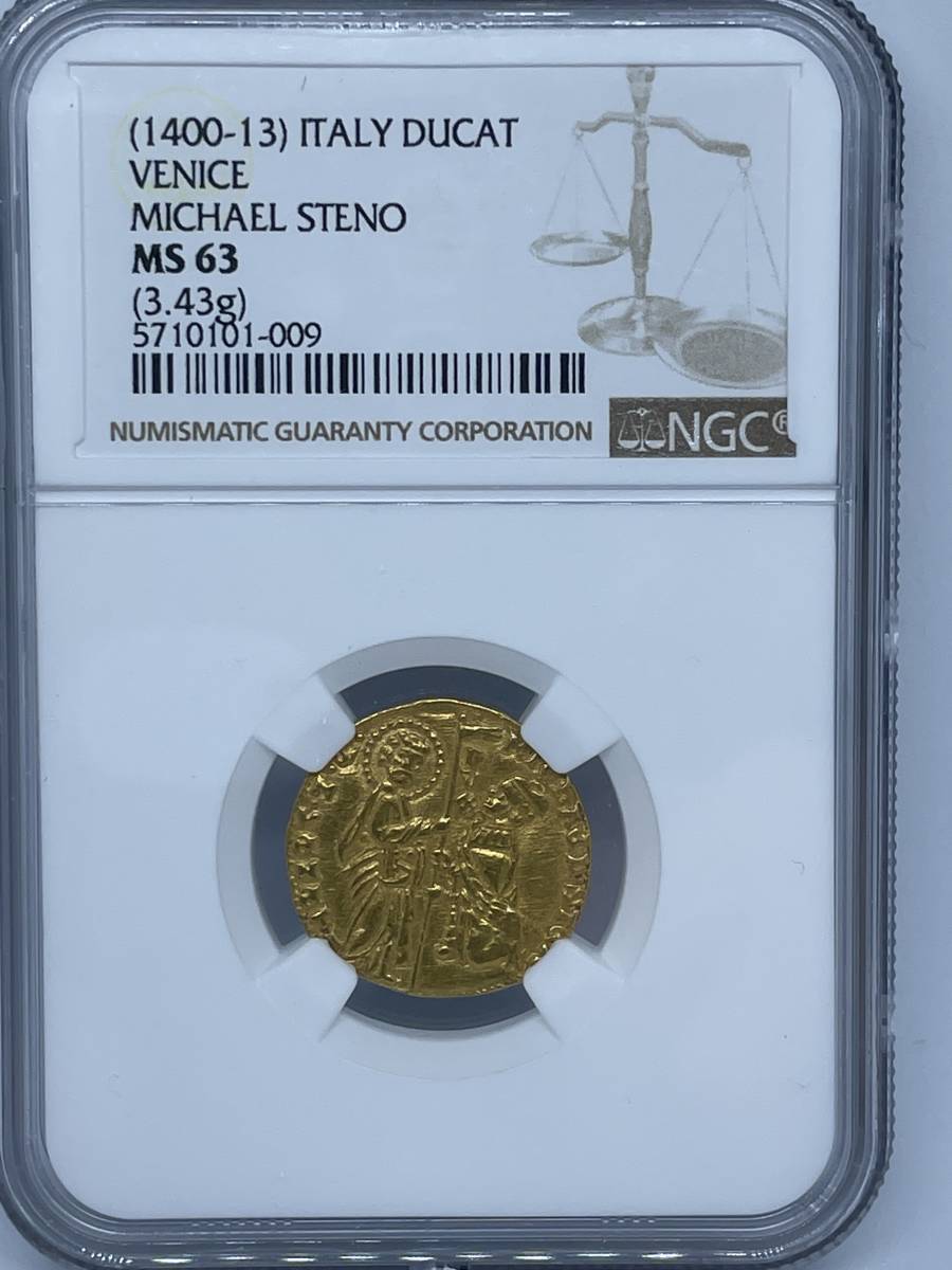 - 1400-13年☆ イタリア ヴェネツィア共和国☆1ダカット金貨☆NGC MS63