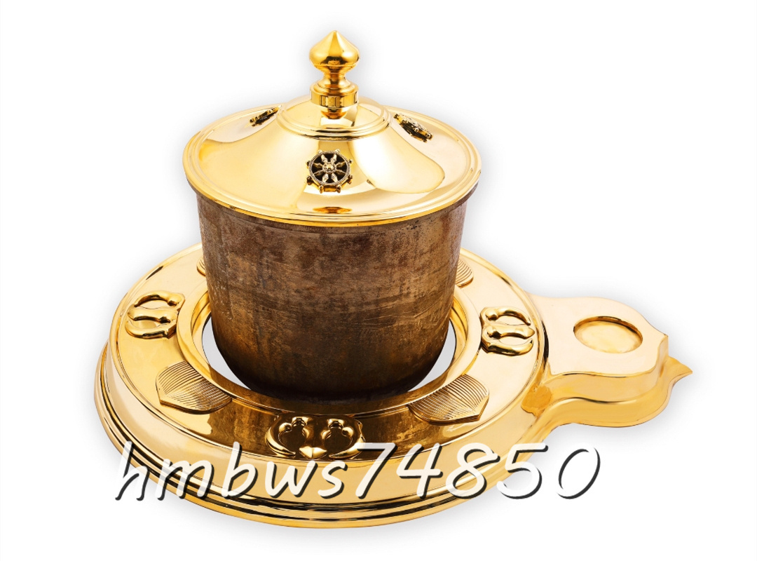 - 「密教法具 寺院仏具」極上品 護摩用仏具 護摩釜 炉 蓋付 護摩焚き 護摩壇 仏具 仏教美術 祈願 祈祷 真鍮製 直径41cm