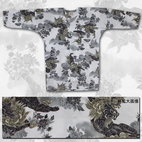 - お祭用品/肉襦袢 鯉口シャツ 唐獅子牡丹 174白 3号(子ども用)