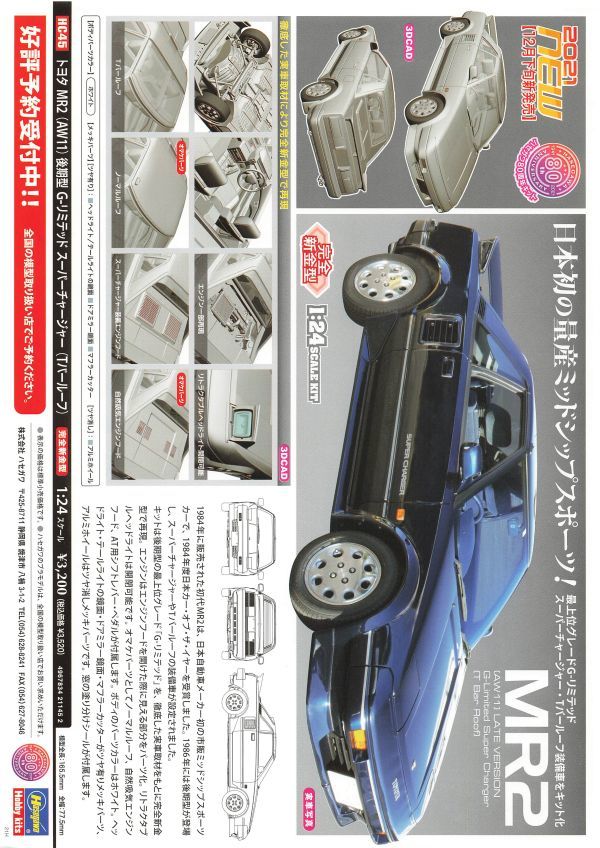 - NEW MR2 [AW11] LATE VERSION G-Limited Super ChArger [T BAr Roof] 2021年12月下旬新発売 ハセガワ A4 チラシ t0029
