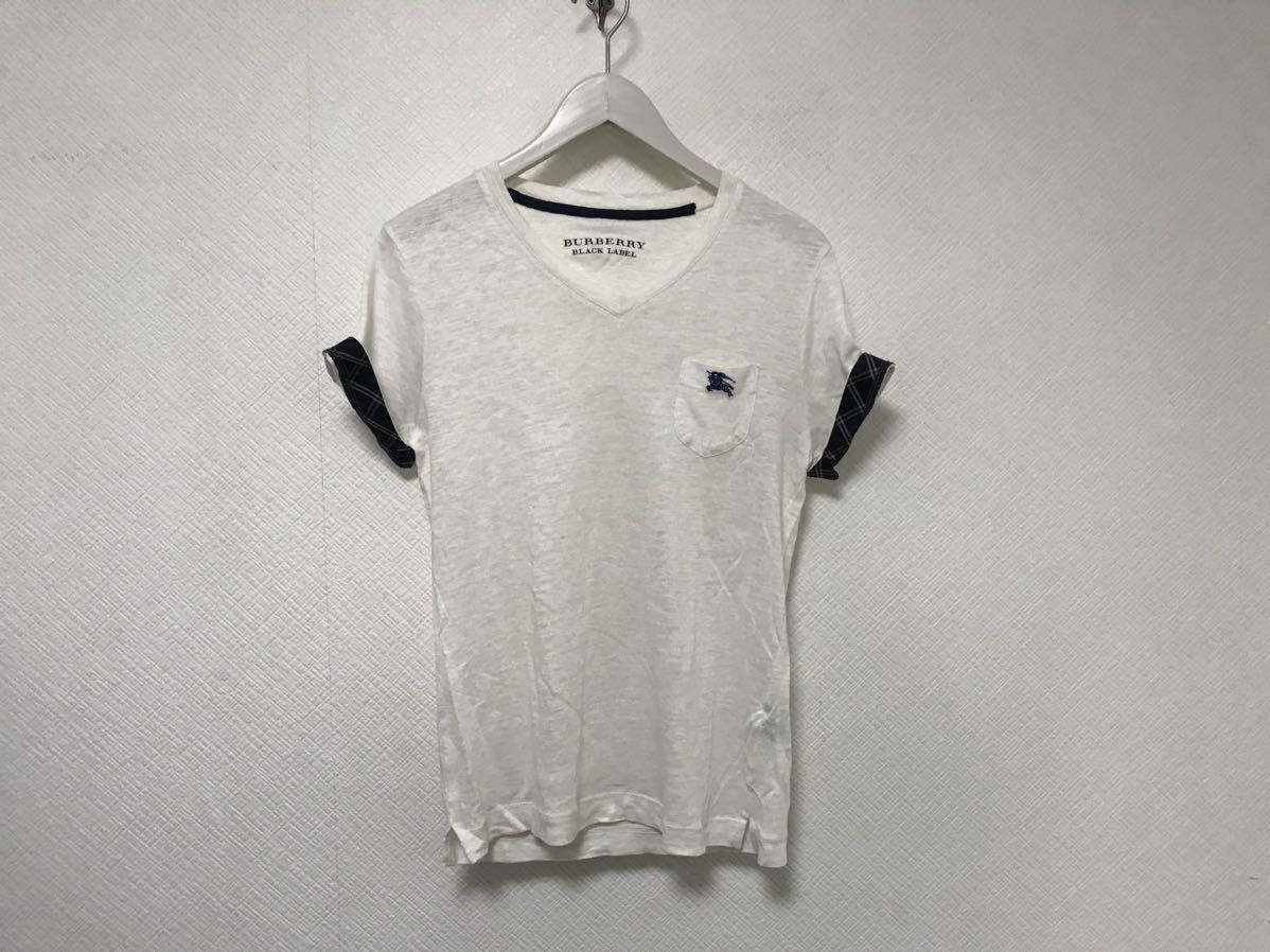 > 本物バーバリーブラックレーベルBURBERRYリネン麻Vネック半袖TシャツメンズアメカジサーフミリタリービジネススーツM2白ホワイト