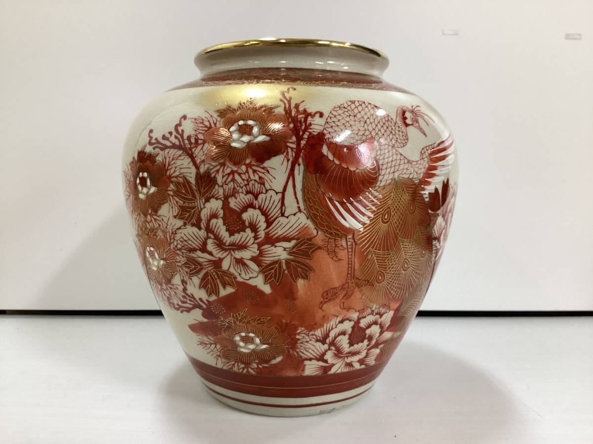 > 花瓶 九谷焼 九谷 西峰 花器 花入 赤絵 金彩 インテリア フラワーベース 壺 つぼ 在銘 K347