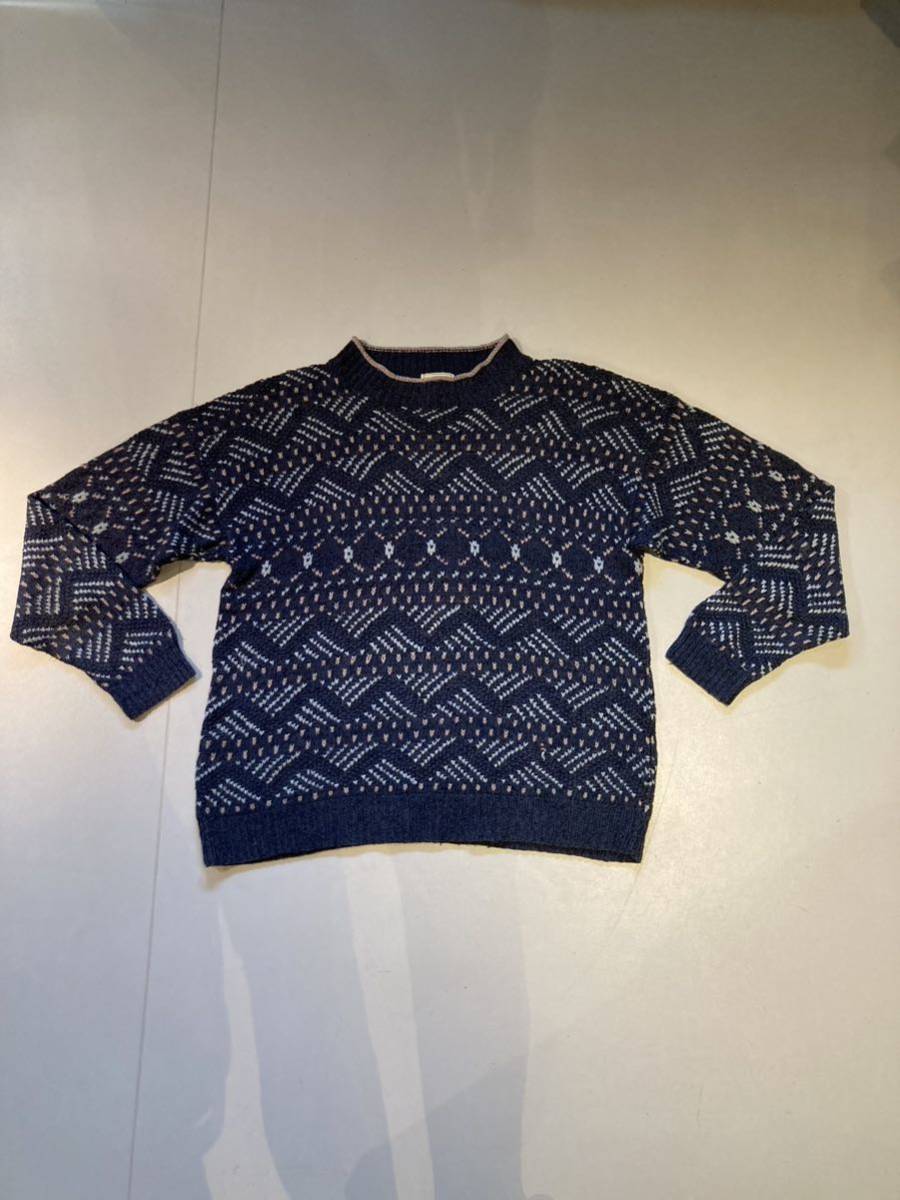 > 80s LLBean All-over pattern knit “silk×linen×cotton” 80年代 エルエルビーン 総柄ニット シルクリネンコットン 青ベース