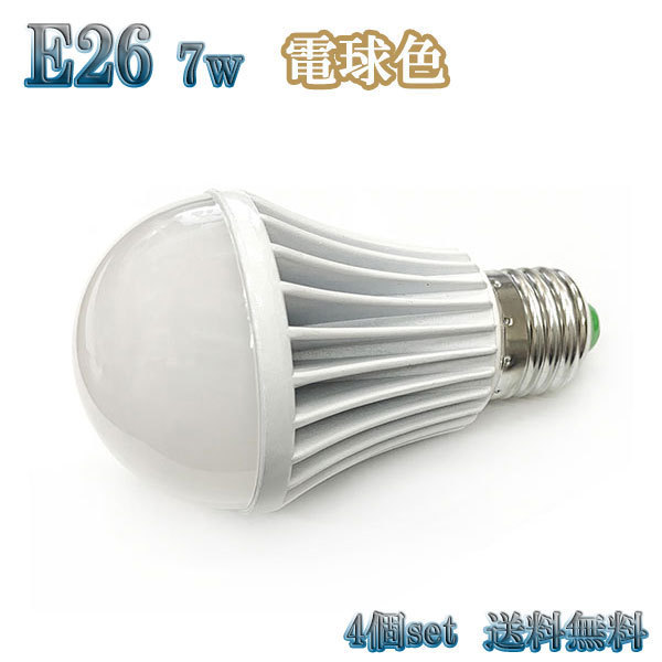 - 7W LED電球 省エネ 全光束700lm E26口金 電球色 【4個set 送料無料】