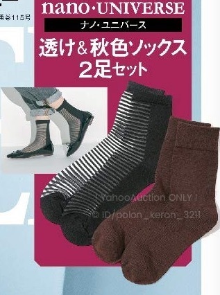 - 【未使用】nano universe ナノ・ユニバース 透けボーダー&チョコブラウン ソックス2足セット/靴下 黒色 ブラック シースルー 茶色系 女性用