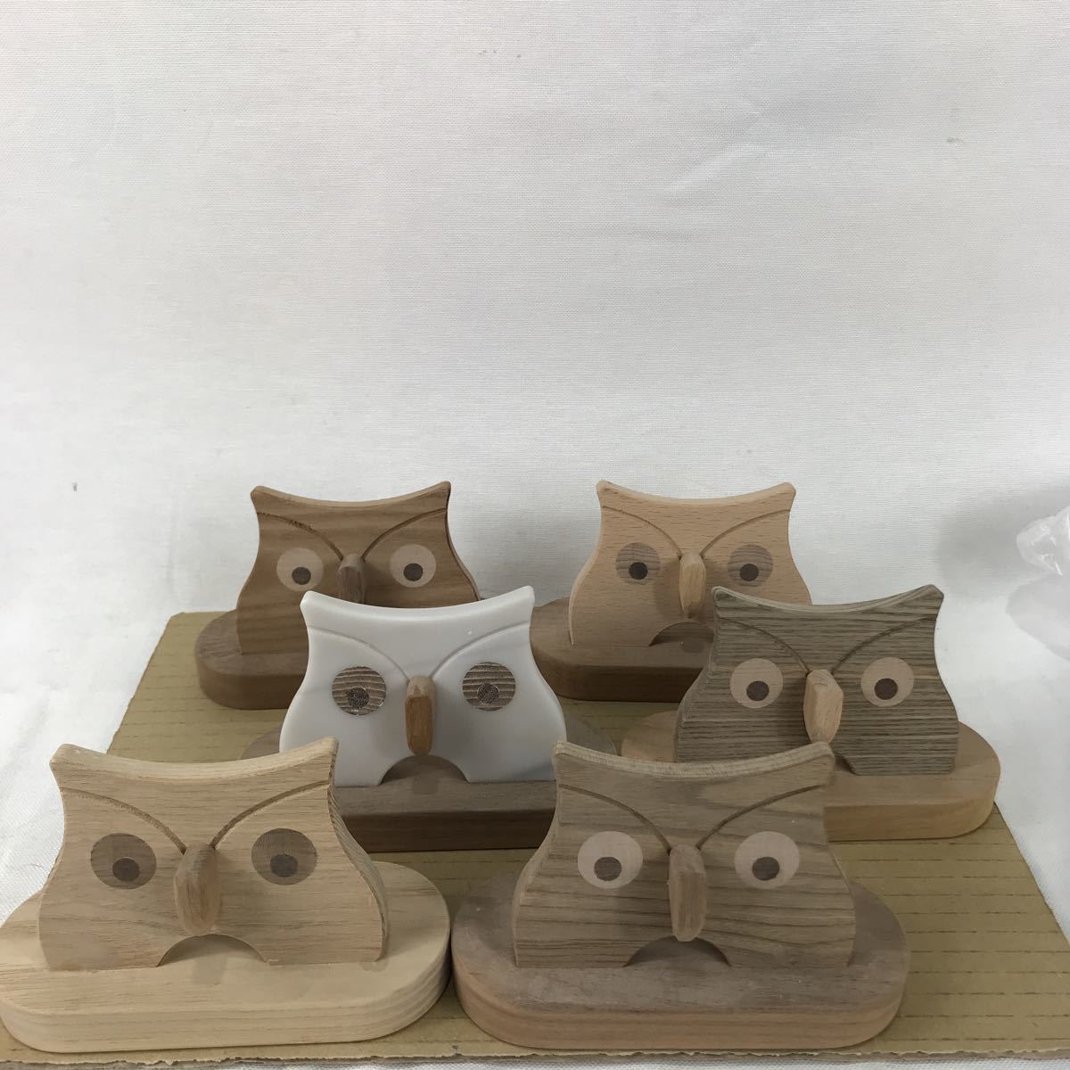 > k ⑨ フクロウのメガネ掛け 木製 ハンドメイド セット アンティーク 置物 自然素材
