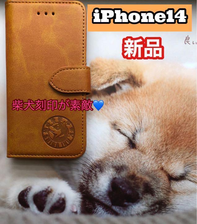 - 【iphone14専用】柴犬焼印キャメル新品未使用スムースレザー加工手帳型ケース