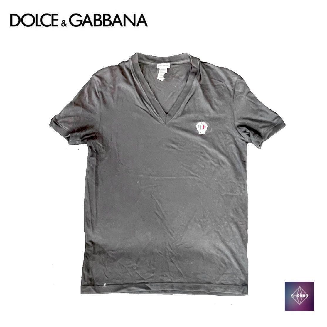 - 【美品】 DOLCE&GABBANA ドルチェ&ガッバーナ Tシャツ 半袖 Vネック トップス ブラック 黒 中古