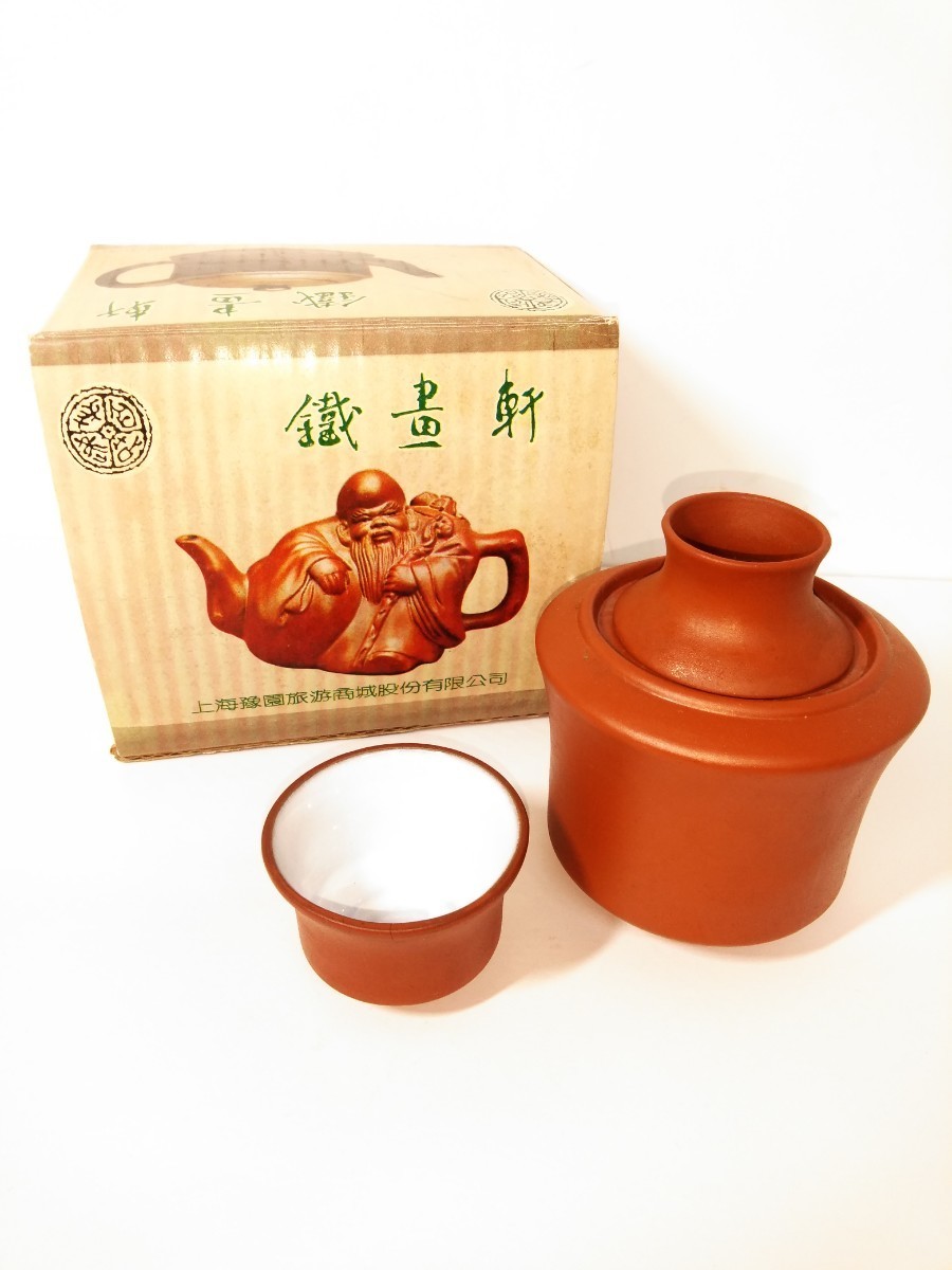- 中国陶器 朱泥 酒器 酒燗器 唐物 酒杯 徳利 酒盃 お猪口 保冷 保温 工芸品 美術品 美品 (検索) 古玩 コレクター チロリ