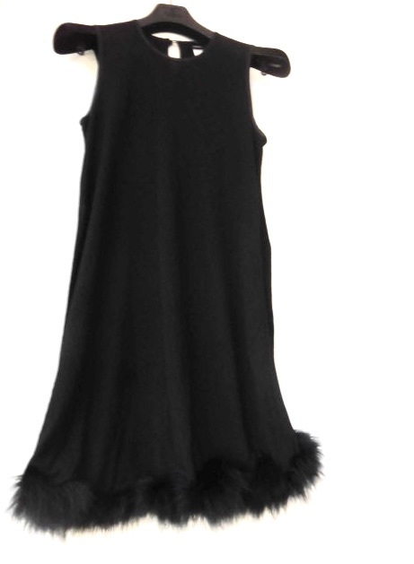 > ●高級 WHISTLES /ホイッスルズ/英国製/黒 MARIBOU 羽飾り/ブラックドレス/サテントリミング/サイズUK10/L~LX相当