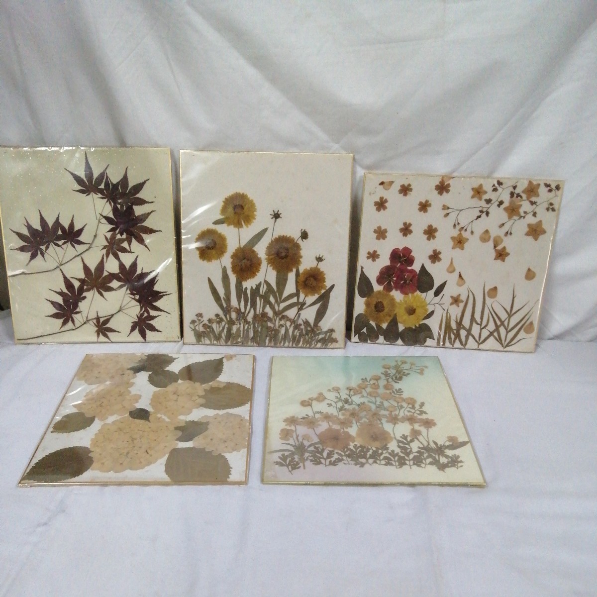 - 計5作品 押し花 ドライフラワー 美術 アート 色紙 芸術 押し華 送料520円他