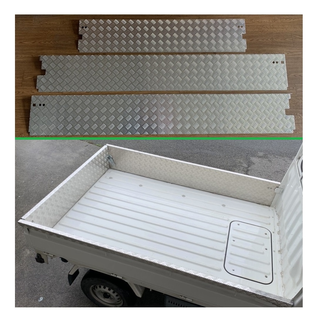 > ★軽トラ 荷台あおりアルミ縞板インナーカバー 3方SET サンバートラック S201J(ゲートチェーン用ブラケット付き車両用)