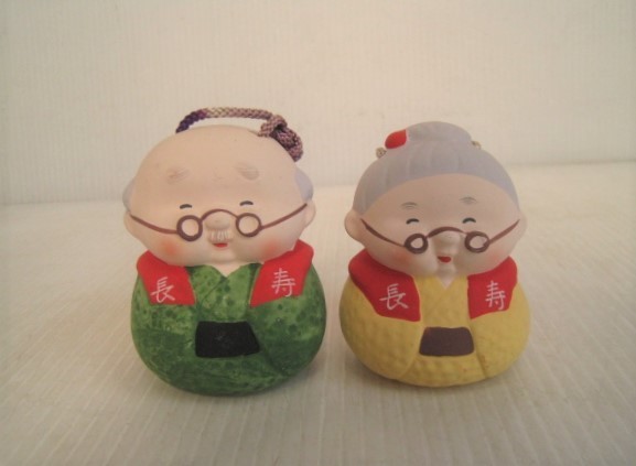 - 土鈴 長寿 お祝い おじいちゃん&おばあちゃん 置物 お爺さん お婆さん 土鈴セット /15N3.25-18