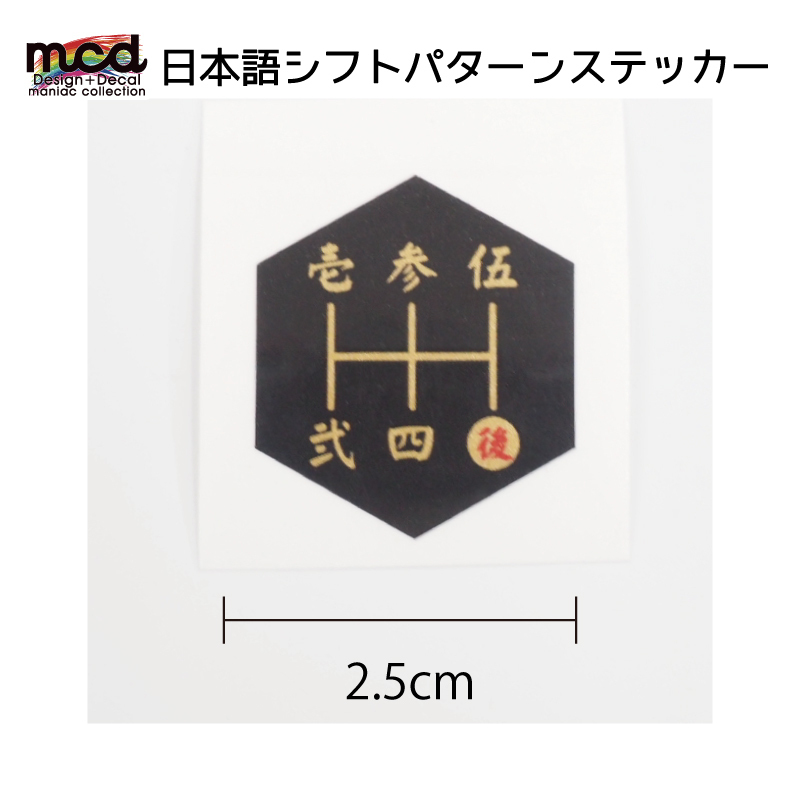 - シフトパターン シール ステッカー 漢字 2.5cm 六角タイプ 1枚 シフトノブ MT車 5速用 マニュアル 黒金文字 R赤 和風 いすゞ 三菱 マツダ
