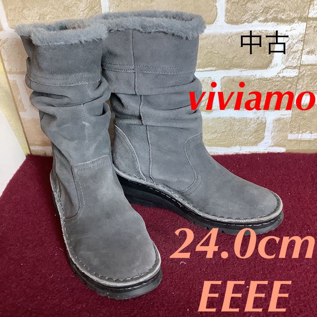 > 【売り切り!送料無料!】A-304 viviamo!ミディアムブーツ!24.0cm EEEE!グレー!内ボア!暖かい!おしゃれ!中古