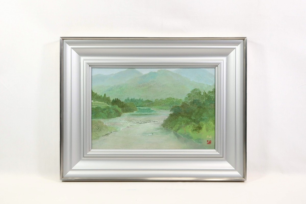 > 真作 山岸純 日本画「静日」画寸 41cm×27cm 6号 京都府出身 日本芸術院会員 徳岡神泉に師事 重厚で幽韻に富み穏やかな自然風景 7363