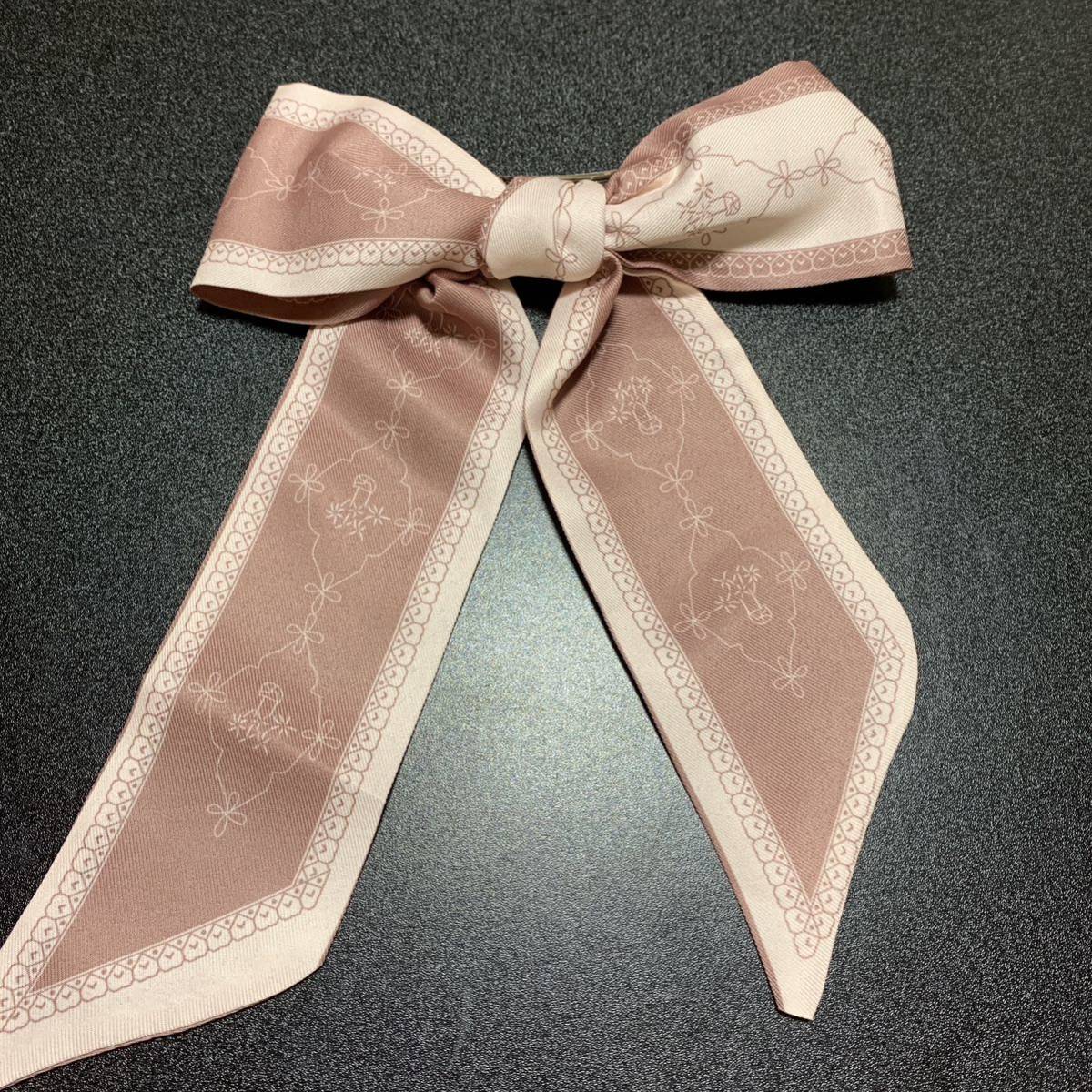 - お姫様 ピンクブラウン リボン バレッタ シルバー
