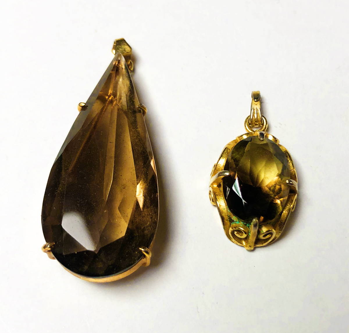 - 天然煙水晶 スモーキークォーツ ペンダントトップ 二個 16 x 31, 14 x 18mm - vo11-22