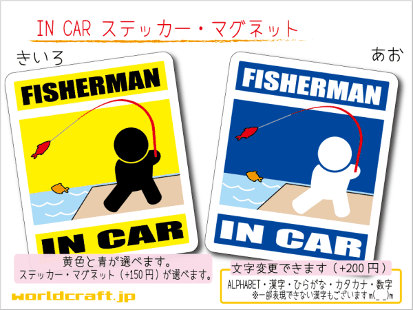 > ■_ IN CARステッカーフィッシング 1枚■カラー選択、ステッカー/マグネット選択 釣り シール 車に! マグネット選択可 _ot