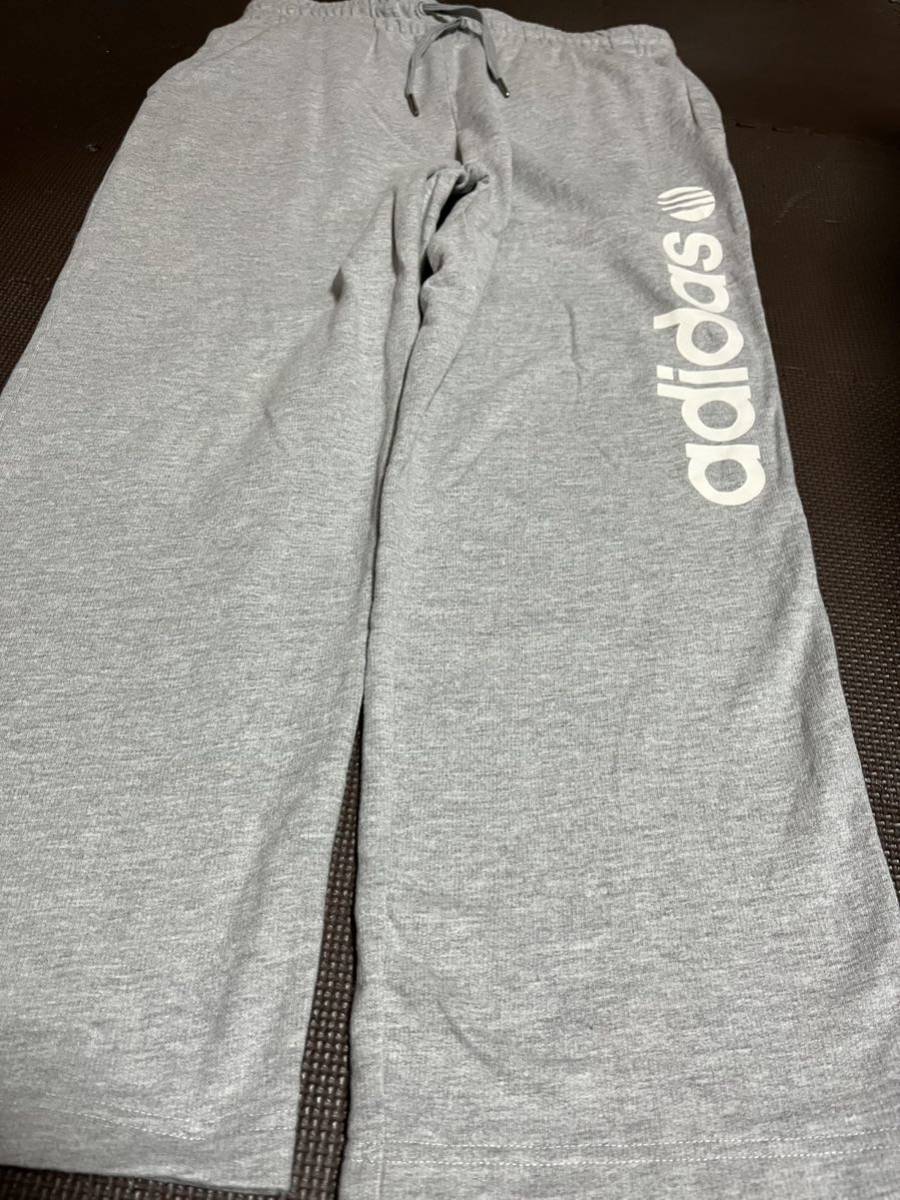 > 美品adidasスウェットグレー、ロゴ白ストレッチパンツ サイズL