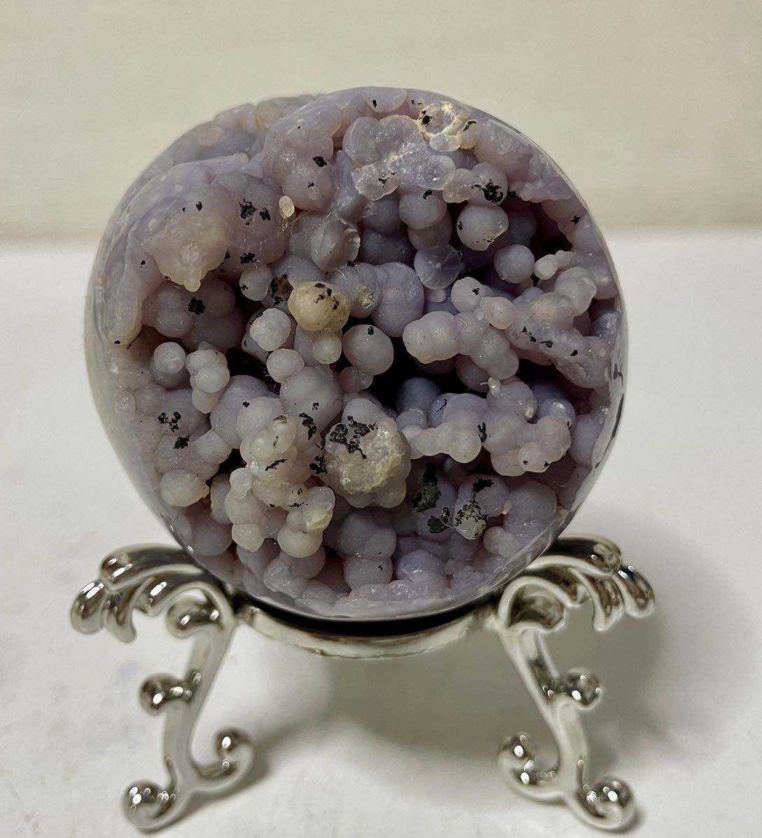 - グレープアゲート カルセドニー 014 スフィア 鉱物標本 鉱石 パワーストーン 置物インテリア 丸玉 風水晶 原石 パープル 葡萄瑪瑙原石 幸運