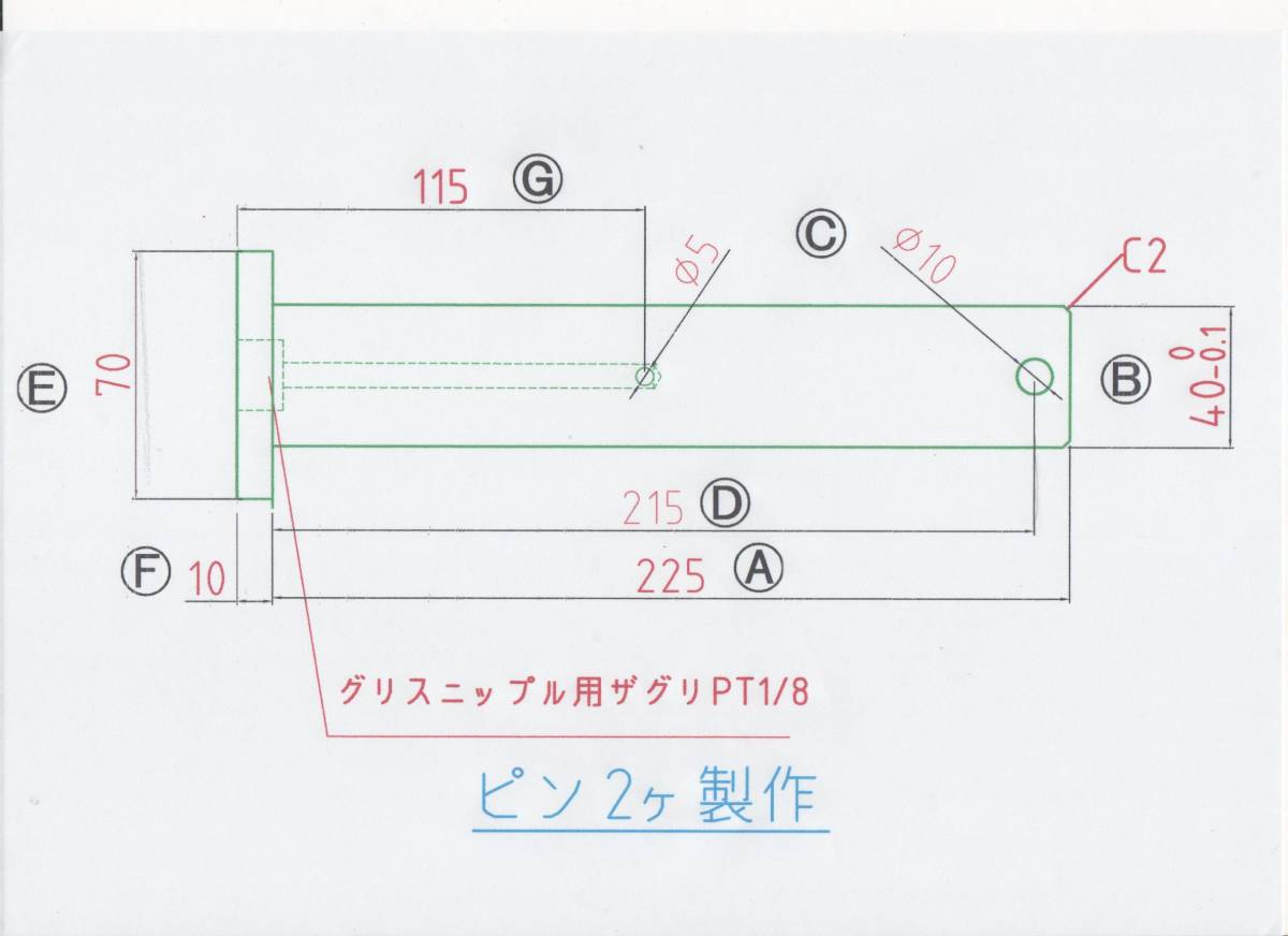 - NO 1458 Φ40用 ツバ下225mm グリス穴付きバケットピン 2本1セット