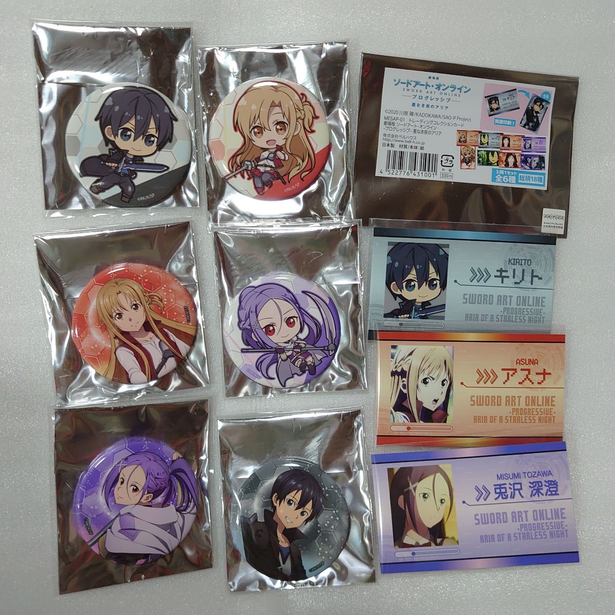 - ソードアートオンライン プログレッシブ 星なき夜のアリア 缶バッジ 6点 コレクションカード3枚 セット abec キリト アスナ ミト SAO 0
